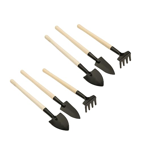 HIAKDOFT 3 pièces Kit Mini Outils de Jardinage avec Manche Pelle Râteau et Bêche Miniatures Noirs et Compacts pour Plantation et Jardinage