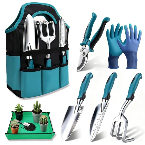 auvstar Kit à Outils de Jardinage, 7 Pièces Outillage de Jardin, Kit de Jardinage Outillage Antirouille,Cadeau Jardin pour Les Femmes et Les Hommes