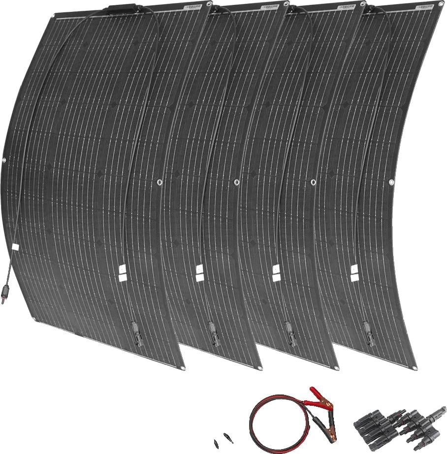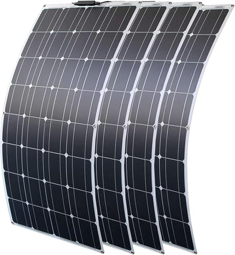 RayGenius Panneau Solaire Flexible 200w 400w Panneaux Solaires Monocristallins éTroits Et éTanches 12v 24v pour Camping/Voiture/GéNéRateur,4x200W