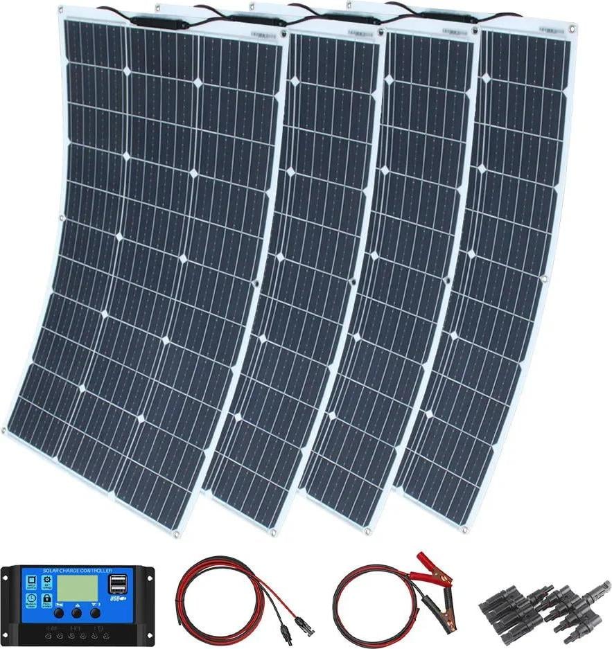 Kit De Panneau Solaire 800w, Kit De Panneau Solaire Monocristallin Flexible 400w Panneau Solaire Contrôleur Solaire 60a pour La Maison, La Caravane, Le Bateau, Two