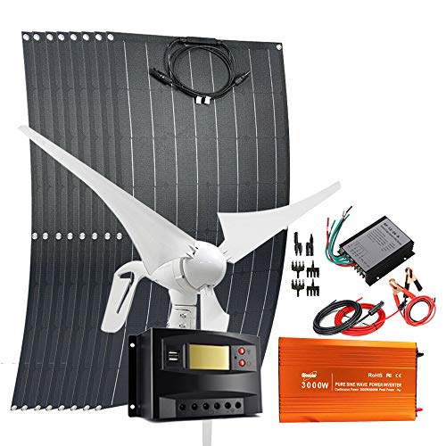 Kit d'énergie solaire pour maison avec onduleur de 300 W, 8 panneaux solaires flexibles de 100 W, éolienne 400 W, contrôleur de charge, câbles solaires et de batterie