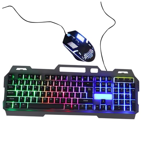 Yardenfun Clavier Et Souris De Jeu Mécaniques USB Filaire pour Gamer, Design Rétroéclairé Noir, Kit Complet Ergonomique, Pc Bureau Et Gaming
