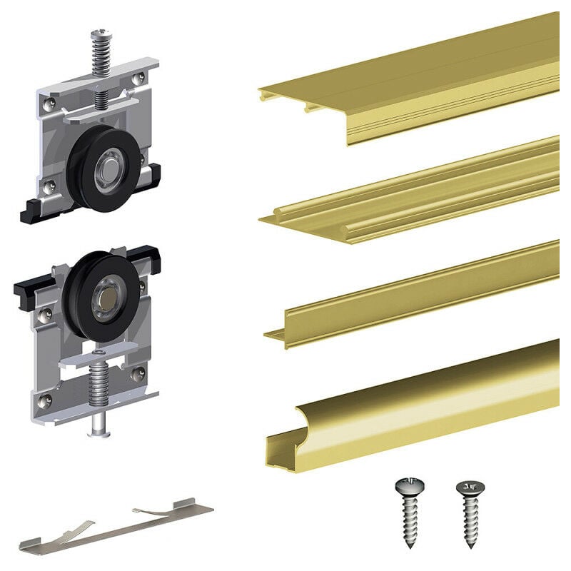 Slid'up By Mantion - Kit slid'up 220 aluminium anodisé or pour 2 portes de placard coulissantes 18 mm - rail 1,8 m - 70 kg