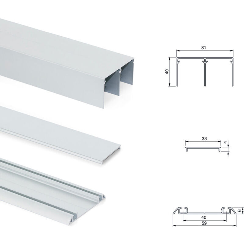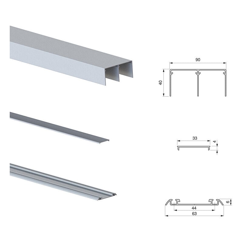 Kit de ferrures pour Placard 90 2 portes coulissantes et armoire à fermeture souple, profilé Vall, épaisseur 19mm, panneaux non inclus, anodisé mat