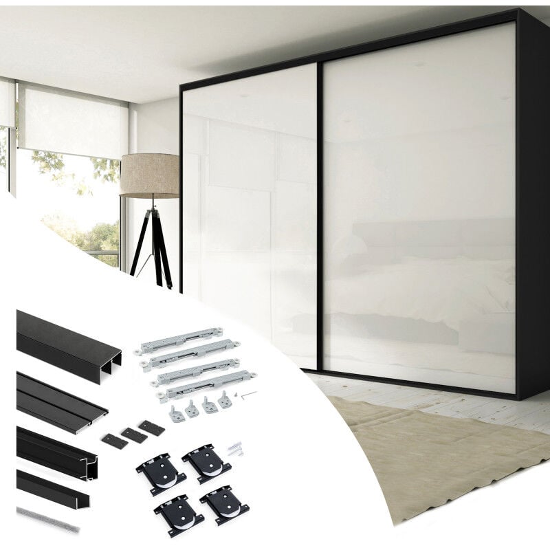 Kit de quincaillerie pour armoire à 2 portes coulissantes - fermeture souple Placard 74- Peint en Noir