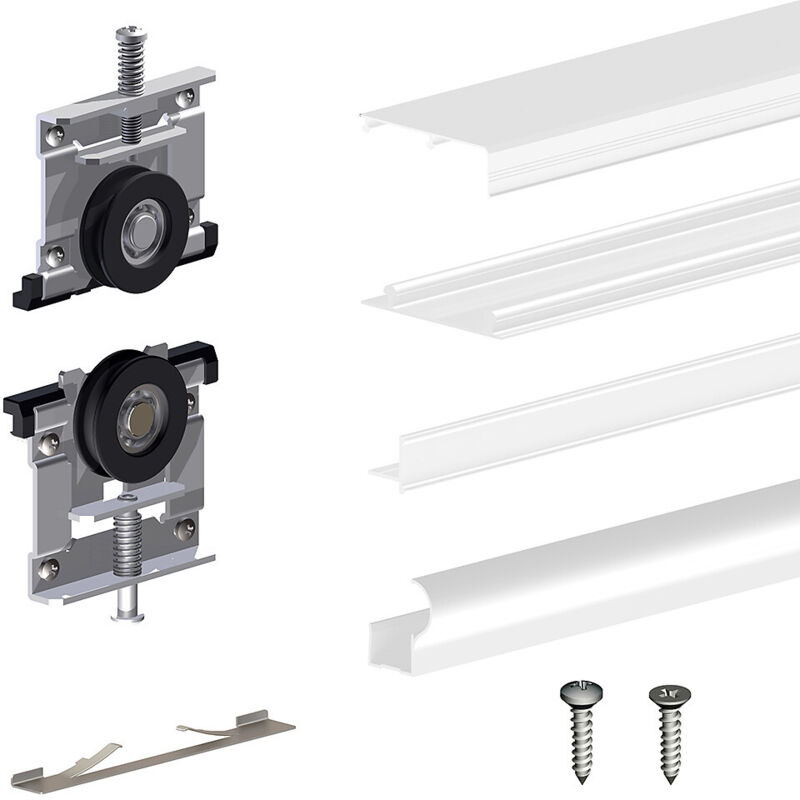 Emuca – Kit de quincaillerie pour placard 2 portes coulissantes 6030862 – Rails 2,35 m recoupables – Charge jusqu'à 30 kg par porte – Fermeture douce