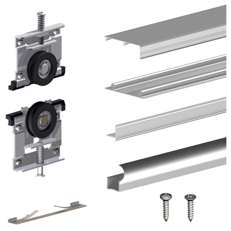 Slid'up By Mantion - Kit slid'up 280 aluminium anodisé argent pour 2 portes de placard coulissantes 18 mm - rail 2 m - 50 kg
