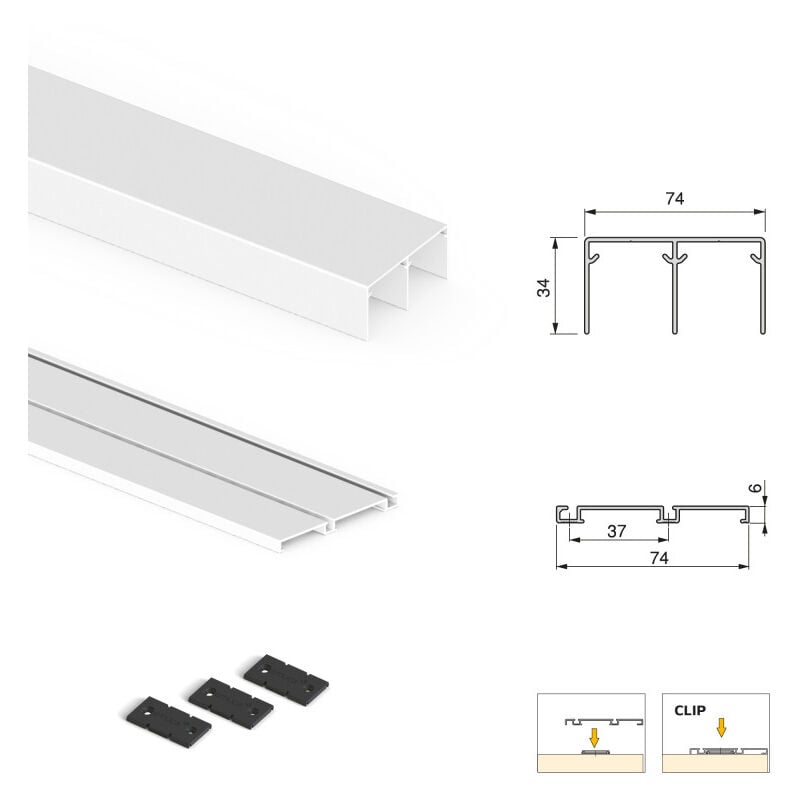 Kit de ferrures pour 2 portes coulissantes et armoire à fermeture souple Placard 74, profilé Wave, épaisseur 16mm, panneaux non inclus, Peint en