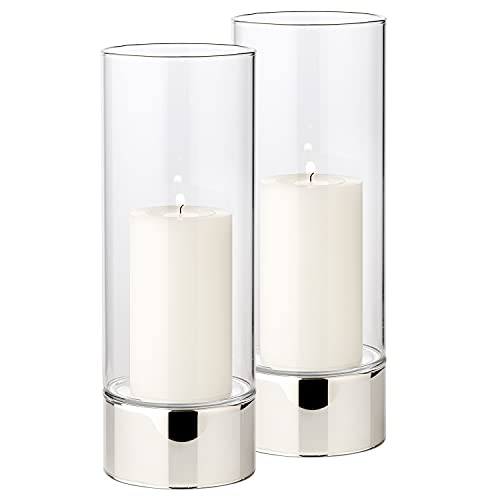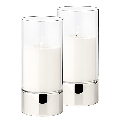 EDZARD Set de 2 photophores Granada (H 20 cm, ø 9 cm) Verre Monobloc, Pied Aspect argenté, Indoor et Outdoor, pour Bougies jusqu'à ø 8 cm, idéal pour la Bougie permanente Cornelius de Edzard