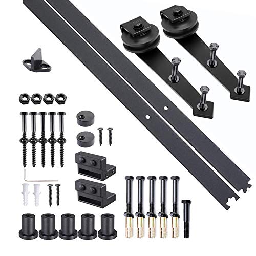 Minglez Kit Porte Coulissante Kit de Quincaillerie pour Porte de Grange à Fermeture Amortie, Rail pour Porte Coulissante Escamotable (à Galandage) — pour Placard, Meuble(Black,12FT/366cm)