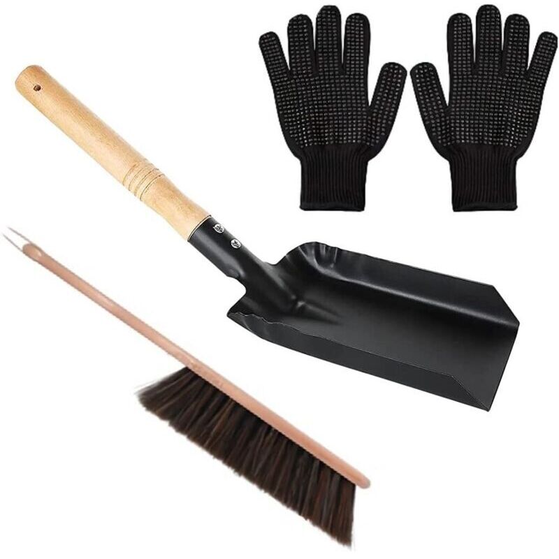 Kit de nettoyage de cheminée avec pelle, brosse de poêle à bois naturel, gant en Silicone noir, pelle de cheminée, ensemble de cuillères à cendres