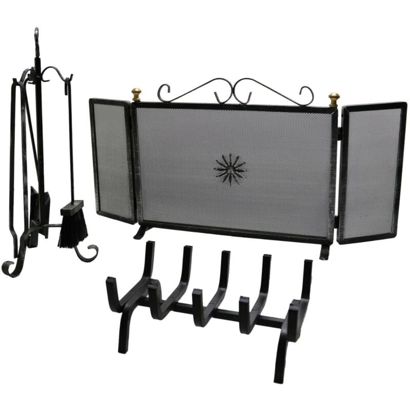 Fonderia Bongiovanni - Kit d'accessoires de cheminée composé de trois éléments : pare-étincelles, perche et poêle à bois