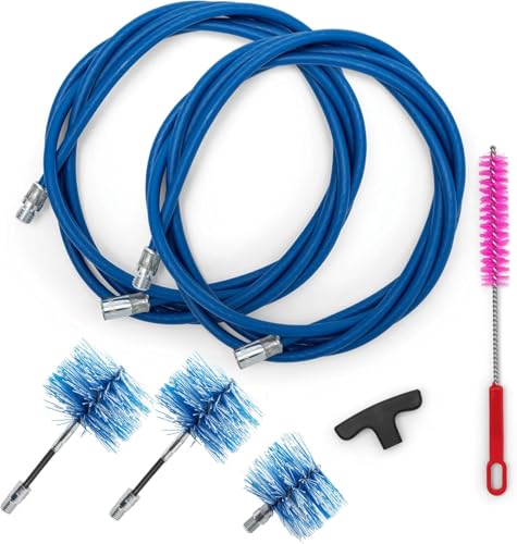 Kit Ramonage Poêle à Granulés, Kit Nettoyage Conduit Poêles à Granulés avec Rallonge Flexible 3 Mètres et Coude à 90°, 2 Brosses Flexibles en Nylon