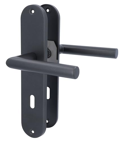 Alpertec Kit de rénovation de porte, plaque longue, en acier inoxydable, noir, pour 2 portes de chambre avec trou de serrure, poignée de porte, poignée de porte