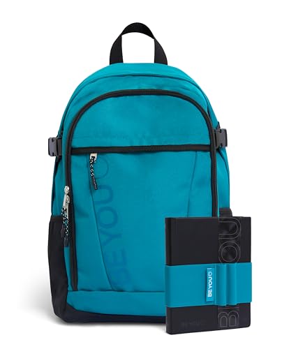 BE YOU - Sac à dos scolaire de loisirs avec poche avant, poche intérieure pour PC, dossier rembourré 28,5 x 42,5 x 16 cm - 24 LT, journal daté 25-26 et bandeau porte-stylos, kit couleur pétrole