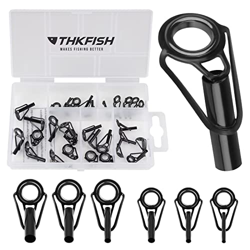 THKFISH Kit de réparation de Canne à pêche Kit de réparation de Pointe de Tige Conseils de céramique Acier Inoxydable au Carbone Spinning Guides de Tige Noir - Cadre 35pièces