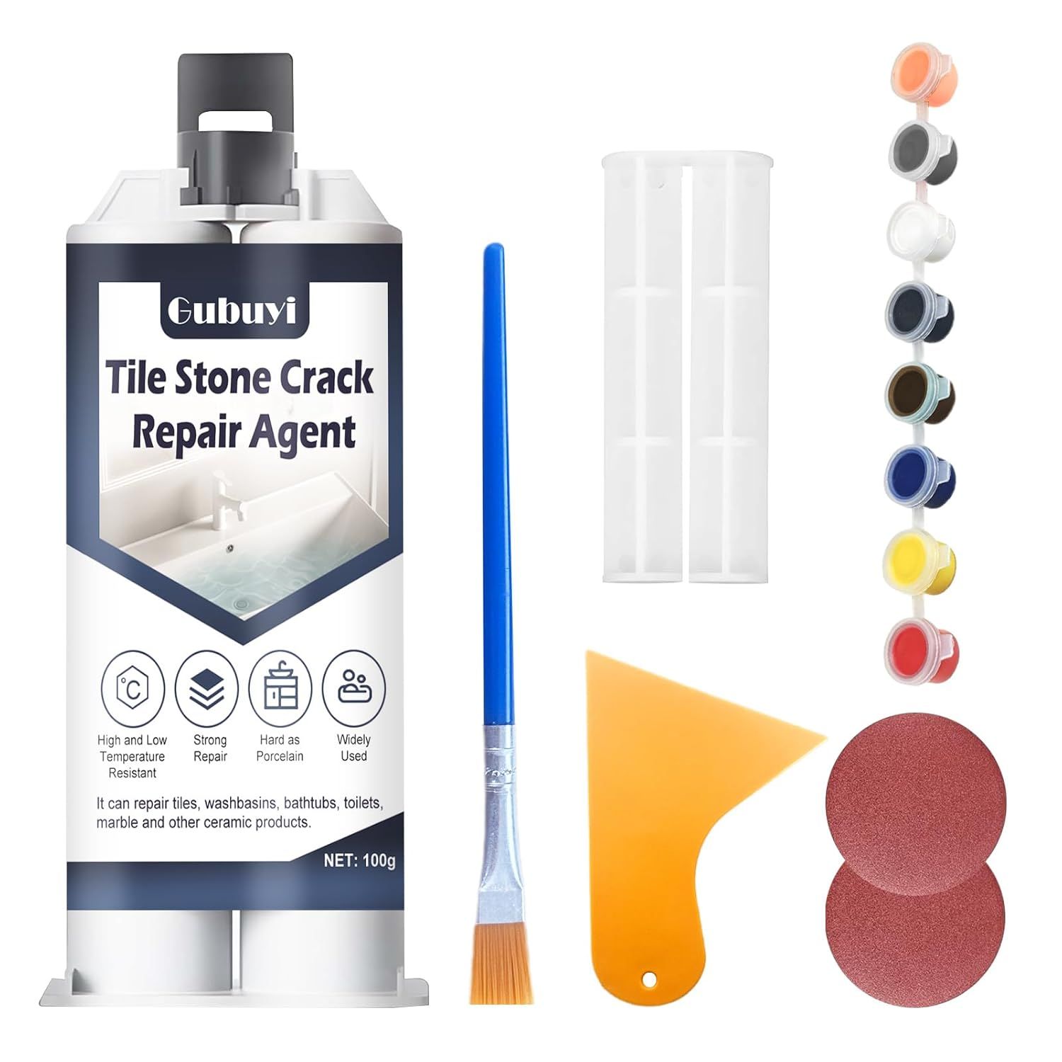 MEVRONISSHOP-100g Kit Reparation Carrelage, Kit de Réparation D'émail, Kit de Réparation de Baignoire, Kit de Réparation D'Évier en Céramique, pour Carrelage, Rayures, Trous, Fissures