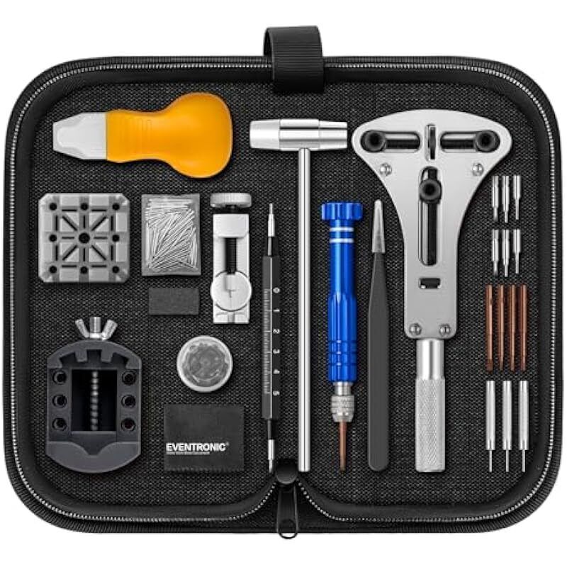 Eventronic 【Nouveau Version】 Outil Montre, Kit Changement Pile Montre Professionnel, Kit Reparation Ouverture du Couvercle, Réglage du Bracelet avec