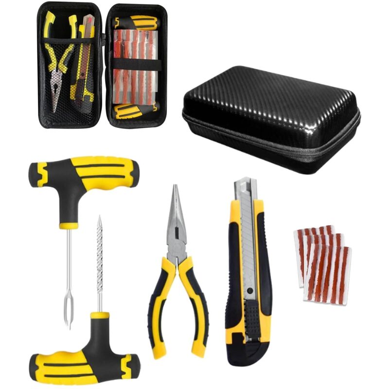 Kit reparation pneu voiture,outil complet pour vos crevaisons en cas d'urgence,kit de réparation de pneus portables,adapté à toutes les marques et