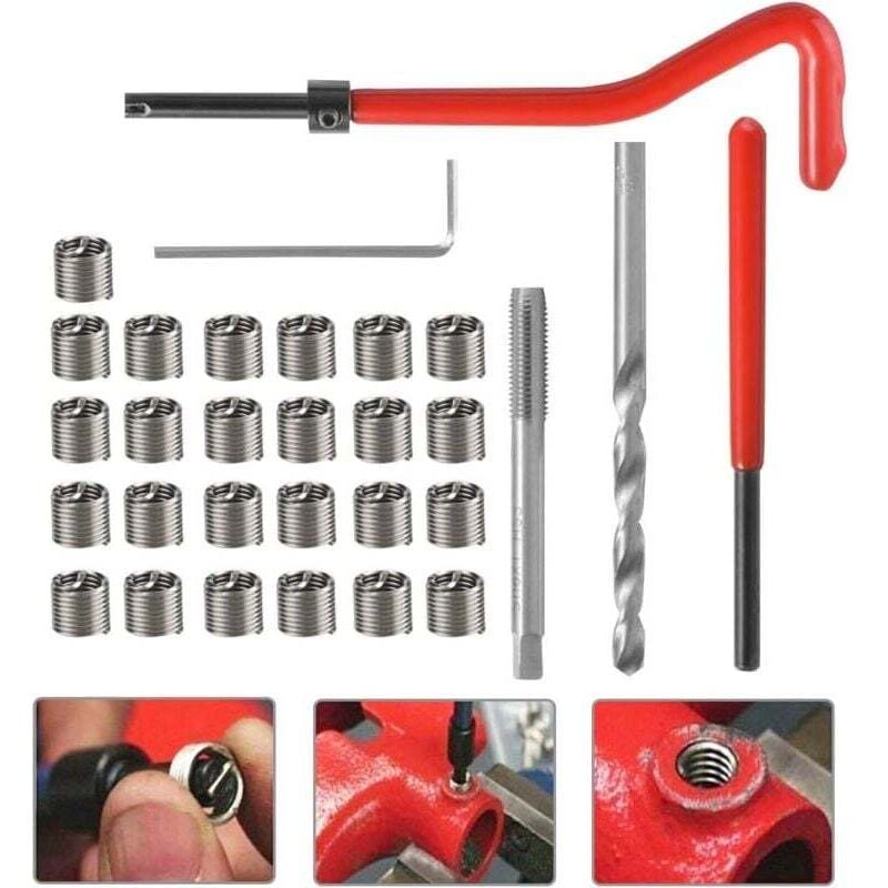 30Pcs Kit Reparation Filetage M6 inox Foret Hélicoïdal Clé Hexagonale Insert Filetage Taraud Filiere Professionnel pour Entretien Quotidien