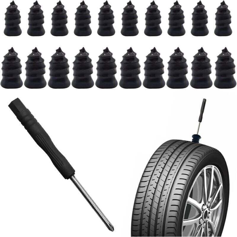 21 Pcs Tubeless Tire Puncture Repair Kit reparation pneu voiturewith Mushroom Avec tournevis,kit anti crevaison voiture Plug for Tyre Punctures and
