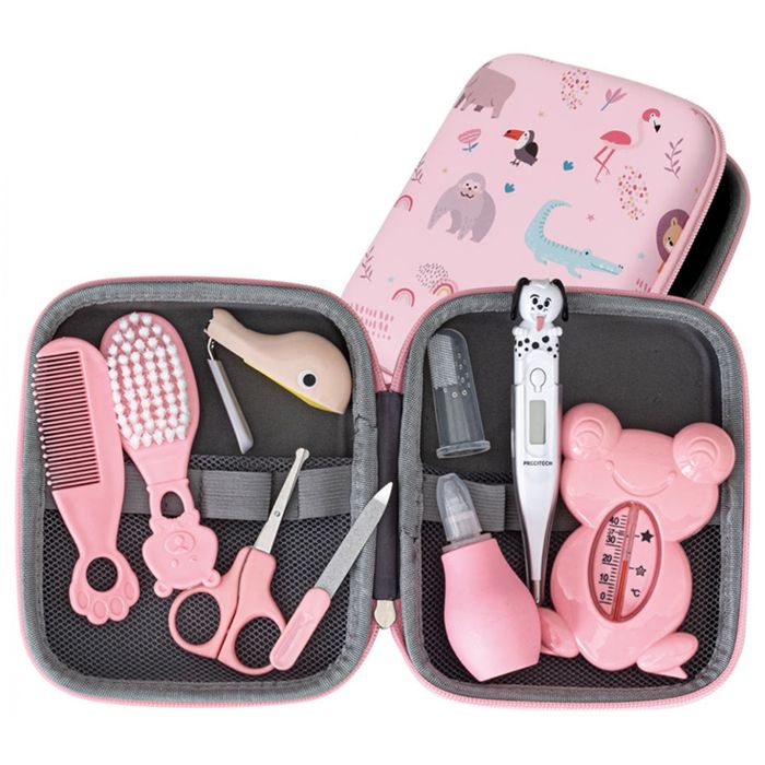 PLIC – Trousse de Soin Bébé 9 Accessoires – Kit Complet Transportable – Idée Cadeau Naissance – Rose