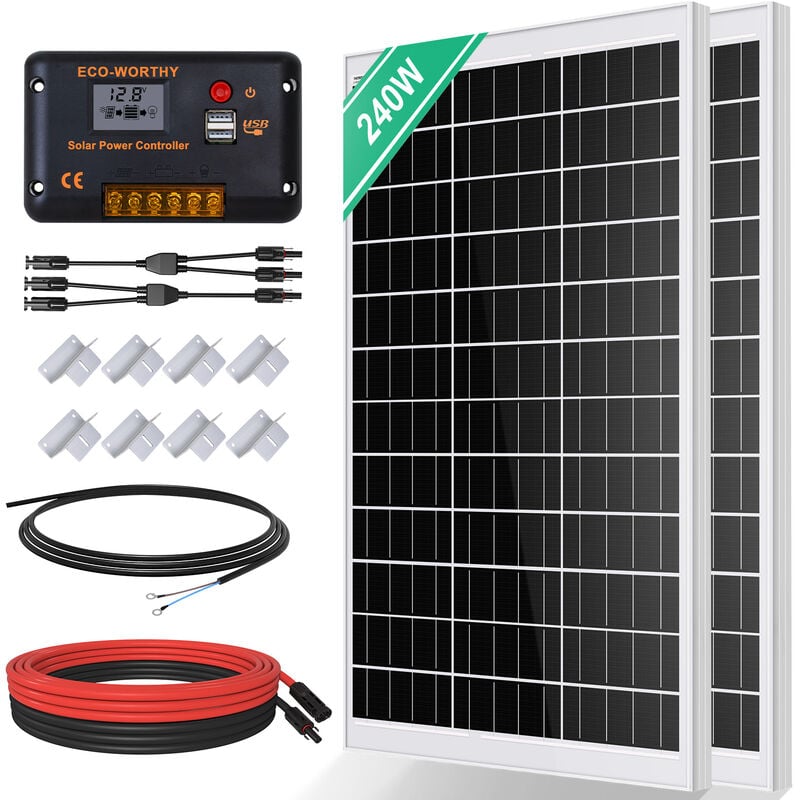 Kit solaire - ALLONSCD - 500W 12V-220V - 2 panneaux solaires - Chargeur 100A - Affichage intelligent