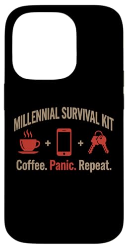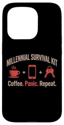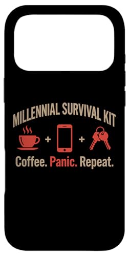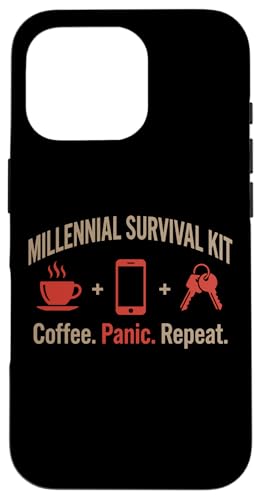 Kit de Survie Millennial Coffee Panic Repeat Funny Coque pour iPhone 16 Pro