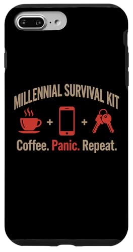 Kit de Survie Millennial Coffee Panic Repeat Funny Coque pour iPhone 7 Plus/8 Plus