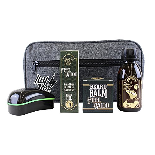 HEY JOE! - Kit de Survie du Barbu Deluxe No. 4 Feel Wood | Beard Care Set For Men HQ [ Beard Oil + Beard Balm + Beard Balm + Beard Shampoo + Beard Brush ] - Inclus Un Sac Cadeau