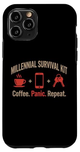 Kit de Survie Millennial Coffee Panic Repeat Funny Coque pour iPhone 11 Pro