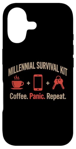 Kit de Survie Millennial Coffee Panic Repeat Funny Coque pour iPhone 16 Plus