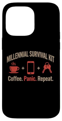 Kit de Survie Millennial Coffee Panic Repeat Funny Coque pour iPhone 14 Pro Max