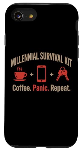 Kit de Survie Millennial Coffee Panic Repeat Funny Coque pour iPhone SE (2020) / 7/8