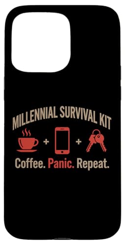 Kit de Survie Millennial Coffee Panic Repeat Funny Coque pour iPhone 15 Pro Max