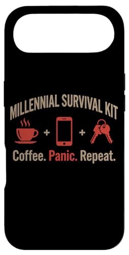 Kit de Survie Millennial Coffee Panic Repeat Funny Coque pour iPhone 17 Pro Max