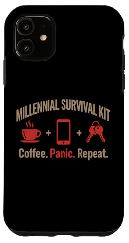 Kit de Survie Millennial Coffee Panic Repeat Funny Coque pour iPhone 11