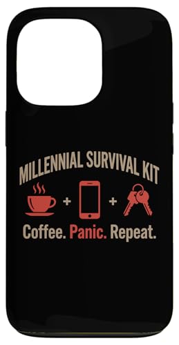 Kit de Survie Millennial Coffee Panic Repeat Funny Coque pour iPhone 13 Pro