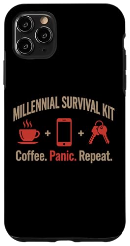 Kit de Survie Millennial Coffee Panic Repeat Funny Coque pour iPhone 11 Pro Max