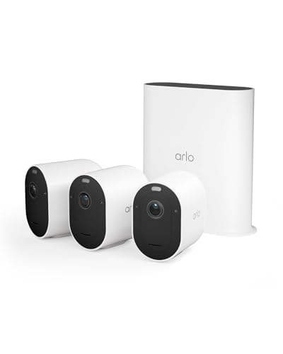 Arlo Pro 5 Camera Surveillance WiFi Exterieure Sans Fil + Smart Hub, 160° Vision Nocturne Couleur Avancée 2K HDR, Sirène, Détection De Mouvement, Inclus 90 Jrs Arlo Secure, Kit de 3 Caméras, Blanc