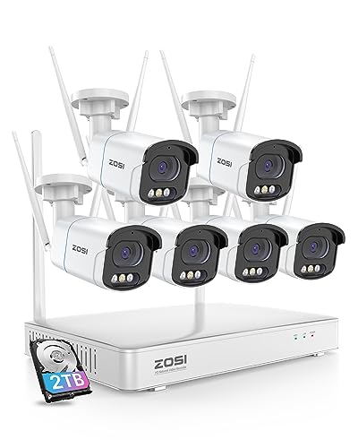 ZOSI 2,5K 8CH NVR Kit Vidéo Surveillance sans Fil avec 4MP Caméra WiFi, Détection de Personne/Véhicule, Audio Bidirectionnel, Alarme de Son et de Lumière, Vision Nocturne Couleur avec Projecteur
