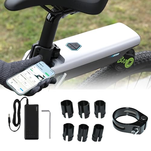 hKjPlvf Booster De VéLo, Autonomie Jusqu'à 50 Km, Kit De Conversion pour VéLo éLectrique (VTT Et VéLo De Route), 6 Adaptateurs De Tige De Selle, Installation sans Outil en 30 Secondes,Blue