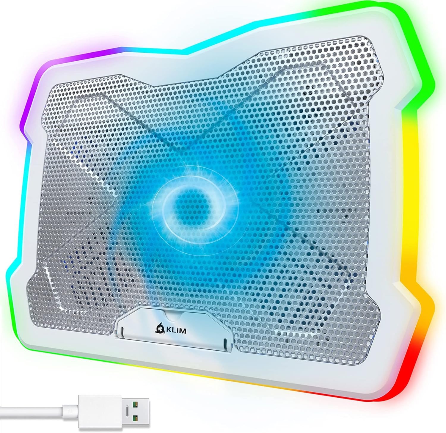 KLIM Ultimate Refroidisseur PC Portable 11" à 17" - Éclairage RGB - Support Ordinateur Portable Gaming - Nouveauté - Ventilateur USB - Stable et Silencieux - Compatible avec Mac PS4 PS5