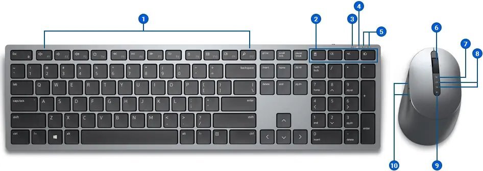 DELL Dell | Premier Multi-Device Keyboard and Mouse | KM7321W | Keyboard and Mouse Set | Wireless | Batteries included | Russian | Titan grey | Wireless connection