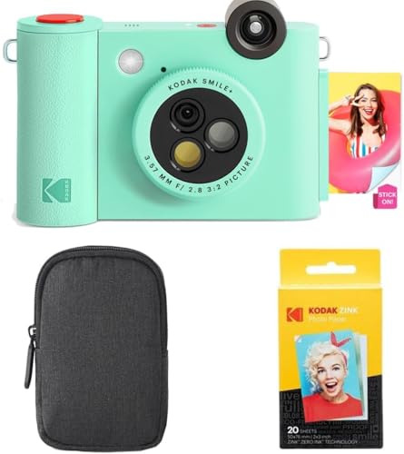 Kodak Smile+ 2-en-1 Caméra Instantanée & Imprimante Photo – Pack de Démarrage, Housse, Papier Zink 20p, 10MP – Vert