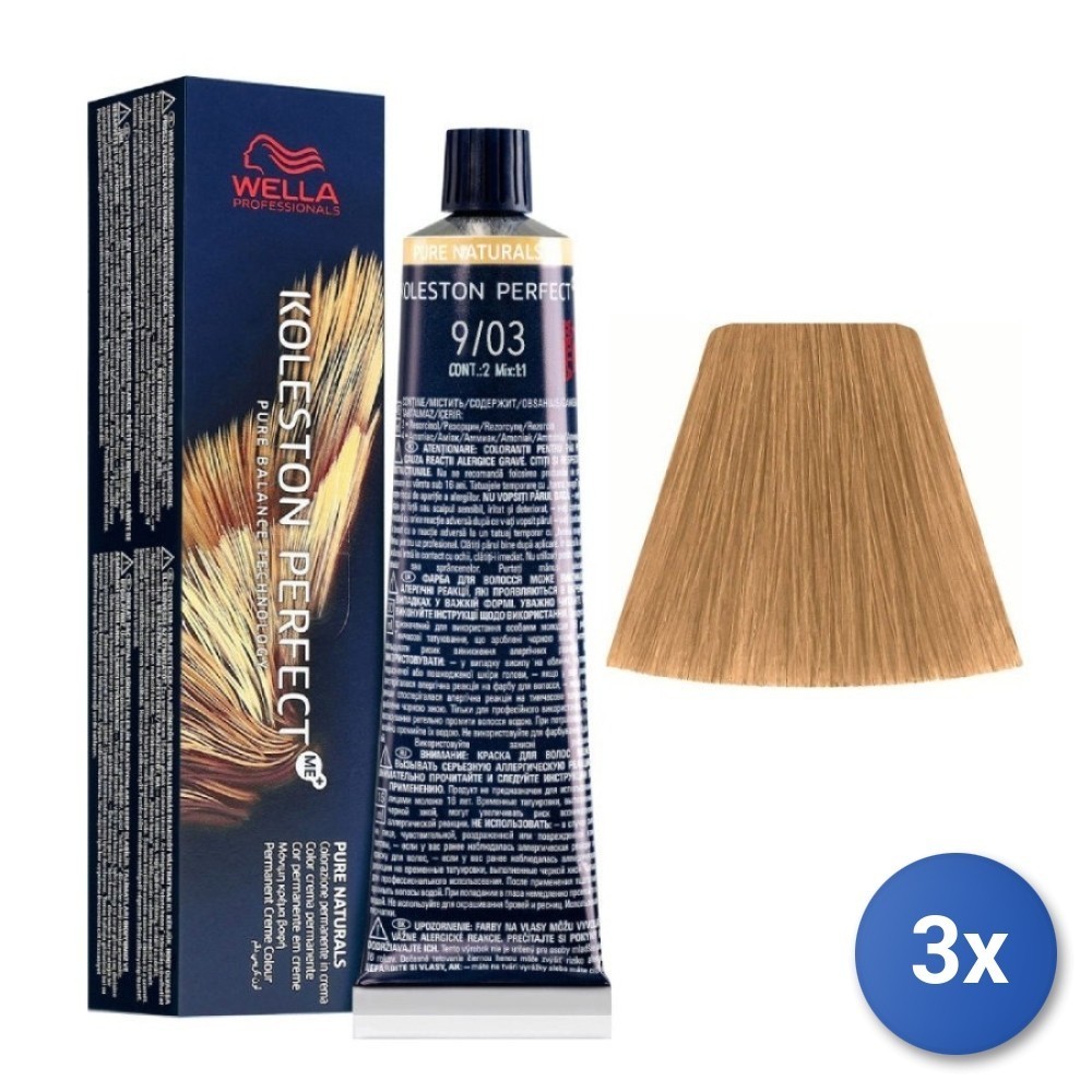 3X Colorant Koleston Perfect Cheveux Tube 9/03 Blond Très Clair Nat