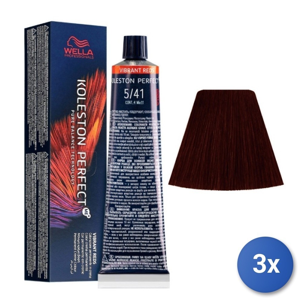 3X Colorant Koleston Perfect Cheveux Tube 5/41 Châtain Clair Cuivre
