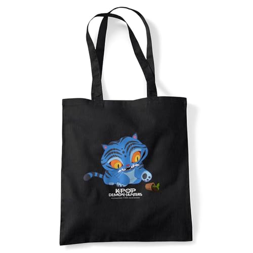 Kpop Demon Hunters Cute Derpy Tiger Cartoon Grocery Travel Reusable Tote Bag, Black