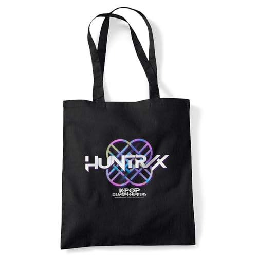 Kpop Demon Hunters Huntrix Pastel Logo Grocery Travel Reusable Tote Bag, Black