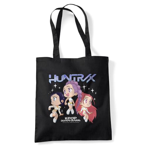 Kpop Demon Hunters Huntrix Chibi Group Grocery Travel Reusable Tote Bag, Black